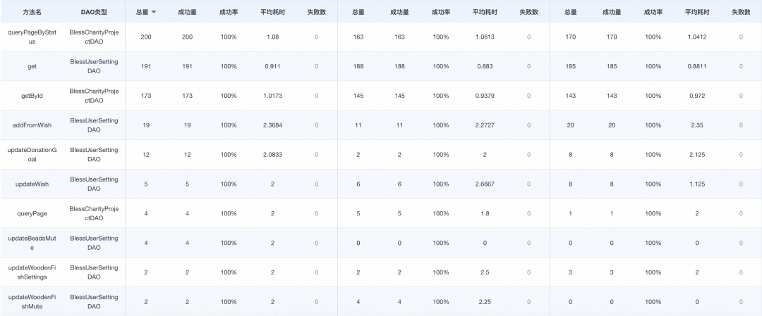 这样实现的监控粒度是具体到每个DAO对象-方法级别的粒度,监控效果如下: