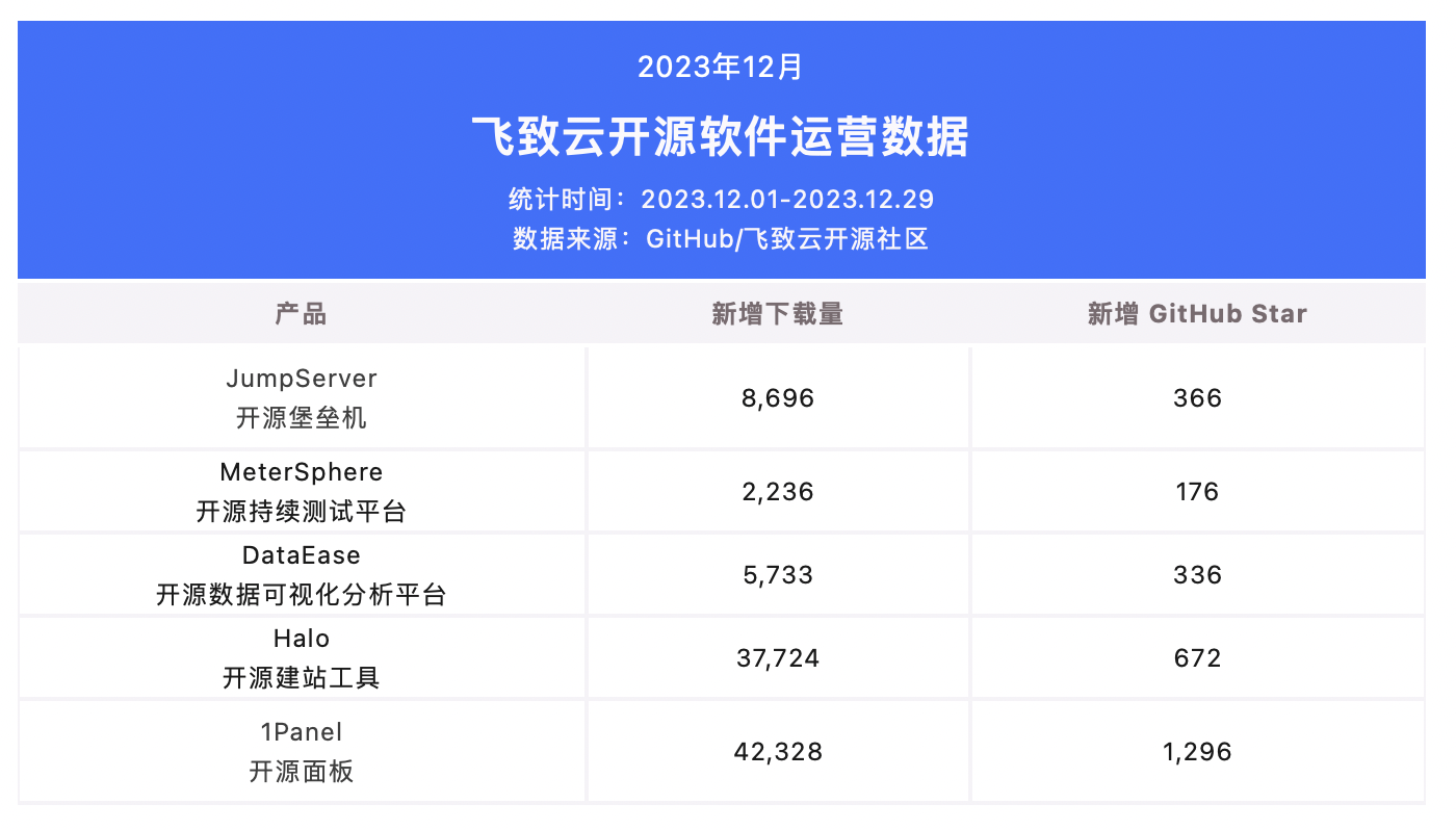 2023年12月飞致云开源软件运营数据概览(统计时间为2023.12.1~2023.12.29)