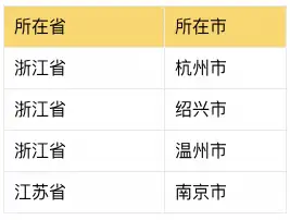 | 浙江省 | 杭州市 | 浙江省 | 杭州市 | 2 |