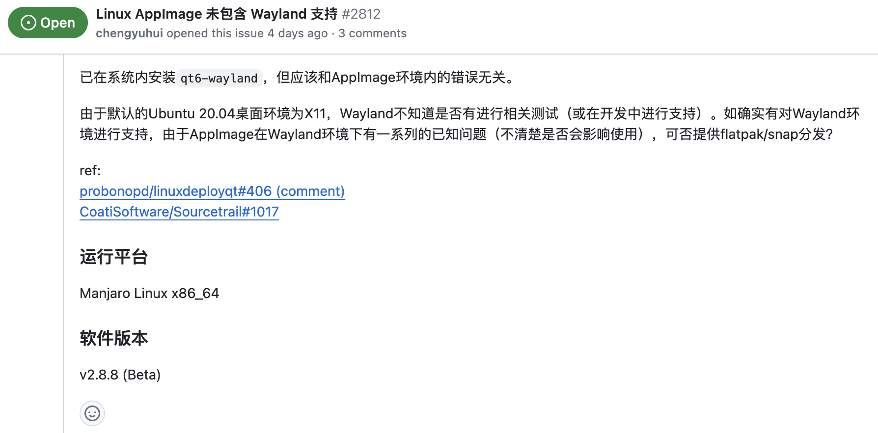 从用户反馈来看,Snipaste 目前发布的 Linux 版本尚未支持 Wayland。