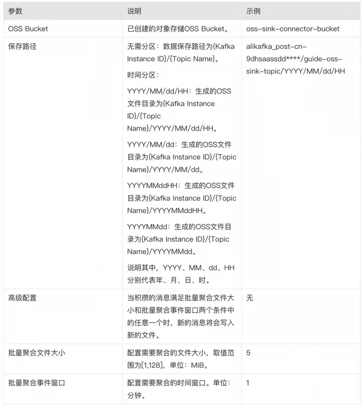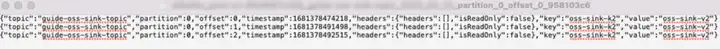 - 数据文件:格式为 partition_{partitionID}_offset_{offset}_{8位Random 字符串},如果一个 Object 中聚合了一个 Partition 的多条消息,Object 名称中的 Offset 为这批消息中的最小 Offset 值。