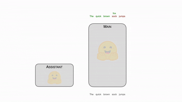 现在我们已经了解了推测解码背后的原理,我们准备实际实现它。在 🤗 Transformers 库中,推测解码被实现为“辅助生成 (Assisted Generation)”推理策略。欲了解更多实现细节,建议读者阅读 Joao Gante 关于 辅助生成 的精彩博文。