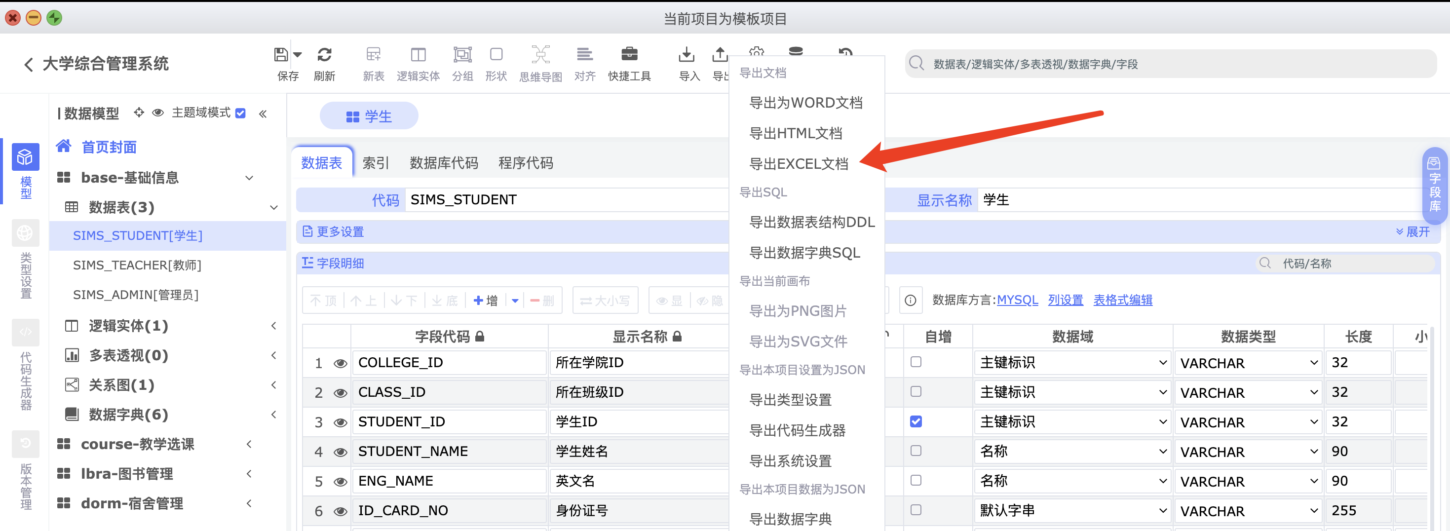 2. 新增加可以将整个项目导出为 EXCEL 文档