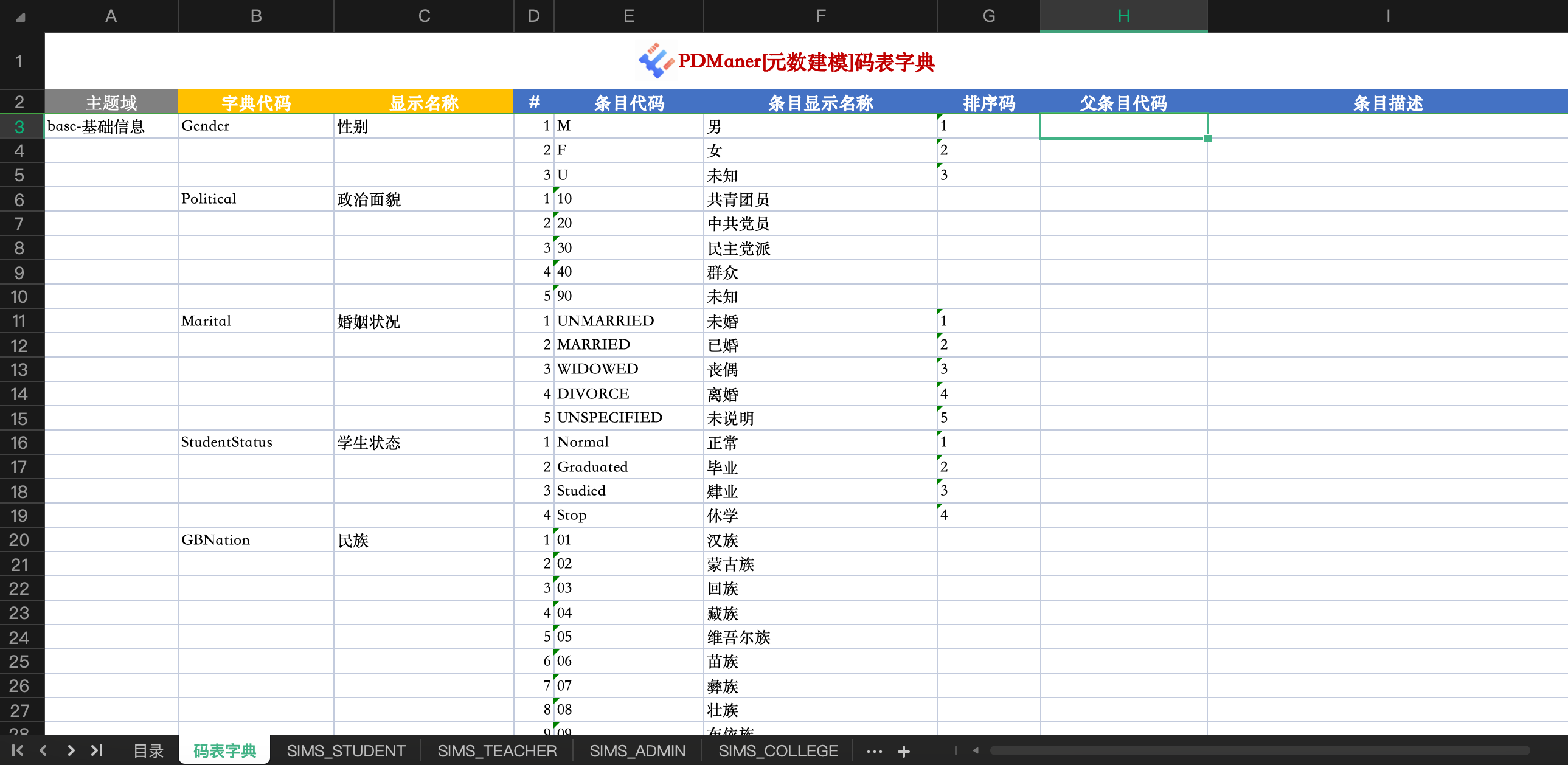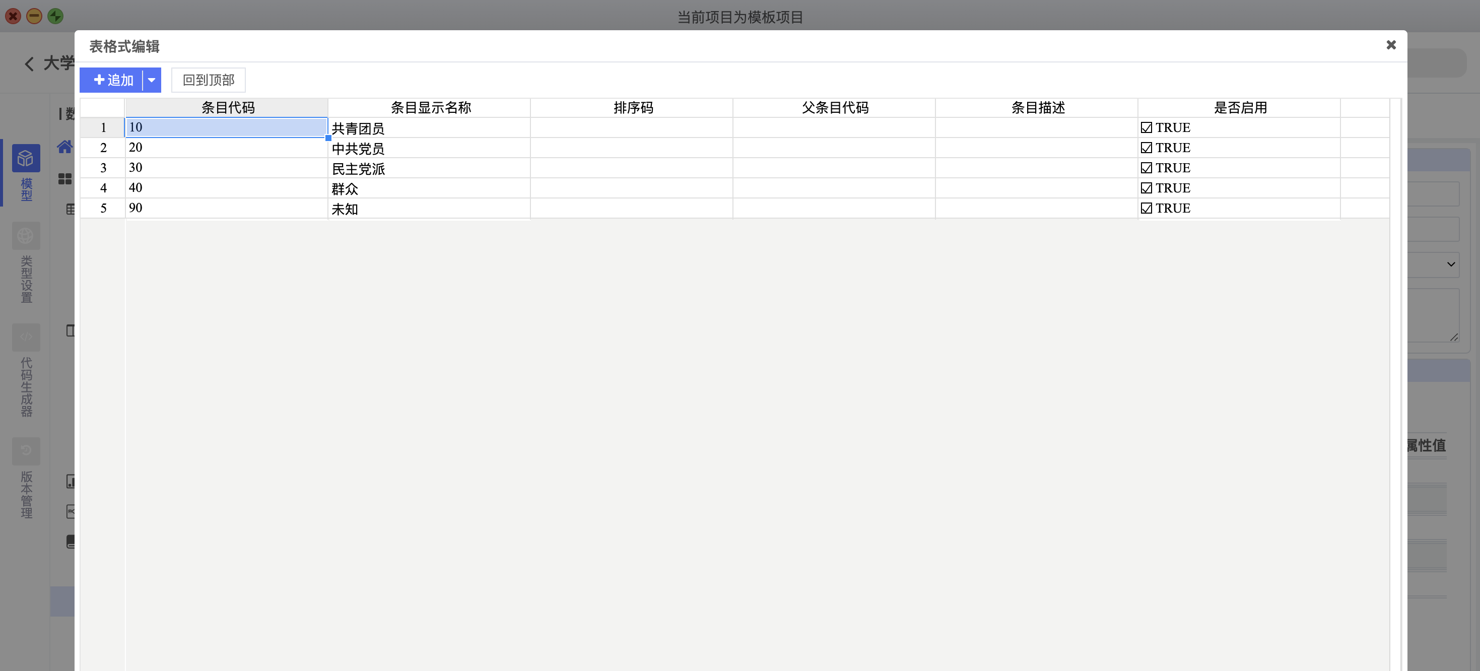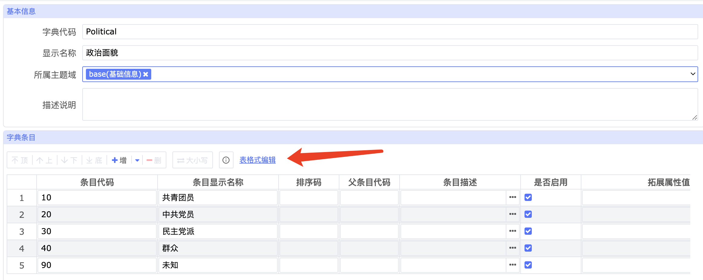 1. 字段及字典的条目项编辑支持 EXCEL 表格式编辑