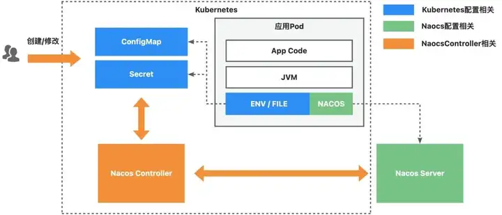 如此一来,我们将 Kubernetes 中配置的管理行为统一到了 Nacos Server 侧。借助 Nacos 的特性能力,如丰富的权限控制、历史版本追溯等能力,对于 Kubernetes 中的配置也能享受到这些特性。当然本质上解决的还是将配置管理的集中在一处的问题。