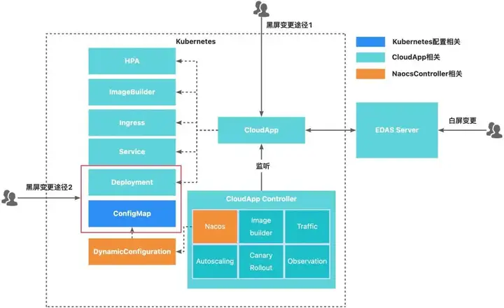从 CloudApp 的技术架构图上,可以看出有三条主要变更渠道,可以根据运维偏好选择合适的变更方式。