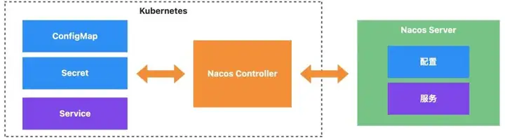 归其根本,我们需要看清问题的本质。Nacos 项目所解决根本问题是微服务技术架构下,实现应用间的动态服务发现能力与应用配置管理能力。Kubernetes 平台所解决的问题是大规模应用集合的管理难题。因此,想要解决前面所述的问题,我们引入 NacosController 项目,它作为链接 Nacos 和 Kubernetes 的桥梁,通过 Kubernetes 运维接口管理 Nacos 能力。