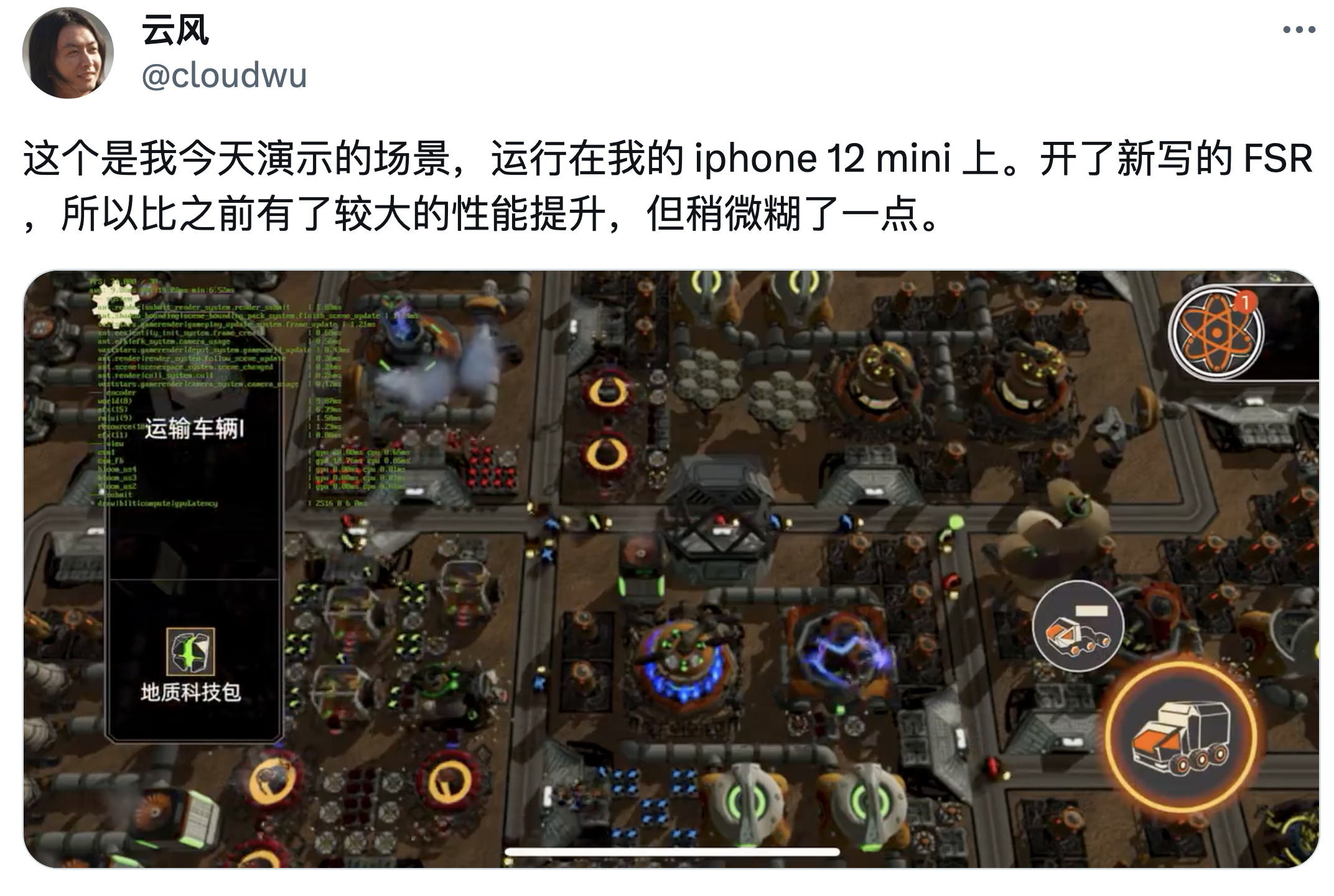 他还说道,Ant 引擎已经开发了 6 年,其团队使用这个引擎开发的游戏有一年历史,技术部分已经全部完成(游戏体验部分还需要调整),性能方面超出预期。