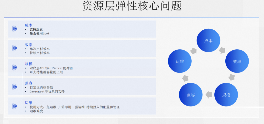 接下来,我们会针对于上面的这一些能力,给大家做一些深度的解析,来看一下阿里云 ACK 在弹性各个层次是怎么投入的,有哪些能力建设。