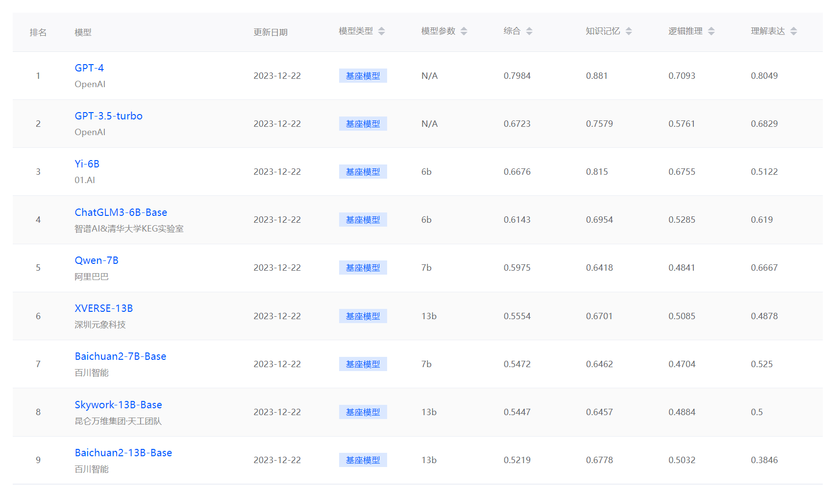 SecBench正在逐步接入大模型进行网络安全能力评测,目前主要针对经典GPT模型以及小规模开源模型进行评测榜单输出。展示模型在能力、语言、安全领域不同能力维度的结果,同时支持安全等级证书考试结果输出。后续将持续接入商用大模型、安全大模型,支持模型能力对比等能力。