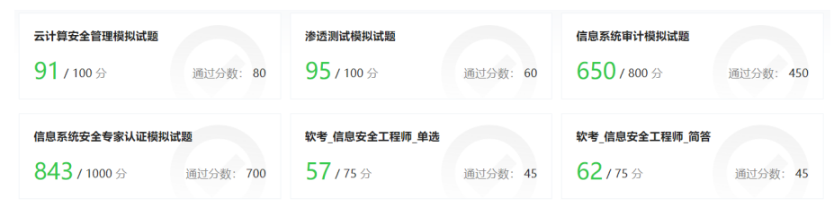 图 3. GPT-4在各类安全证书考试中的评估结果(绿色为通过考试)