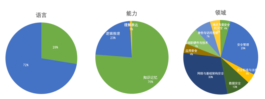 一是积累行业独有的网络安全评测数据集。评测数据是评测基准建设的基础,也是大模型能力评测最关键的部分。目前行业内还没有专门针对大模型在网络安全垂类领域的评测基准/框架,主要原因也是由于评测收据缺失的问题。因此,构建网络安全大模型评测基准的首要目标是积累行业内独有的网络安全评测数据集,覆盖多语言、多题型、多能力、多领域,以全面地评测大模型安全能力。