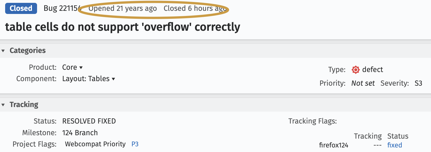Firefox 的工单记录页面显示,一个在 21 年前发现的 bug 终于被修复了。
