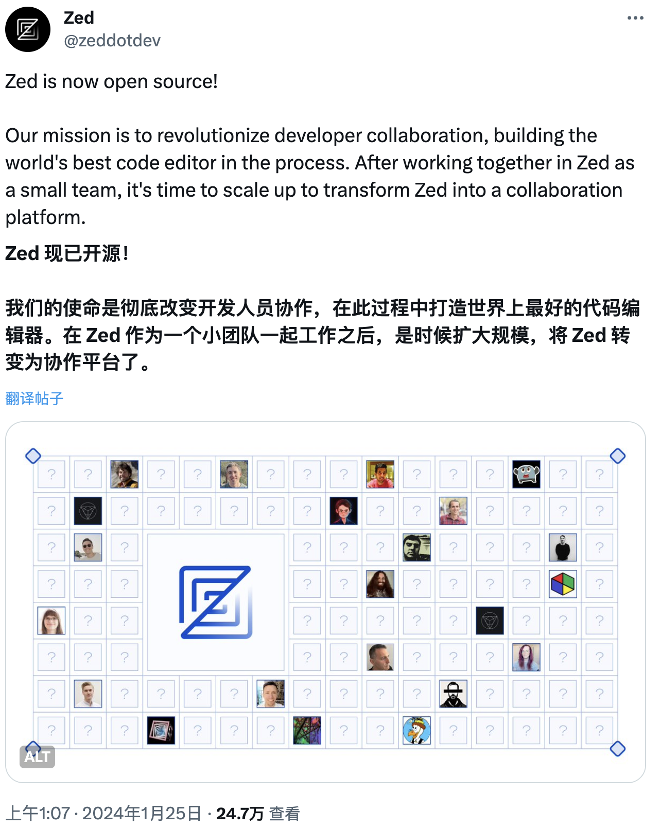 Zed 是一款支持多人协作的代码编辑器,底层采用 Rust,主打 “高性能”。其开发团队今日宣布 Zed 正式开源。