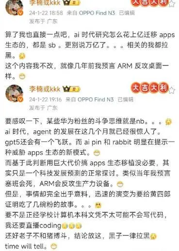 算了我也直接一点吧,AI时代研究怎么花上亿迁移apps生态的,都是sb。更别说万亿了,相关的我都拉黑。这个内容我不改,就像几年前我预言ARM反攻桌面一样。