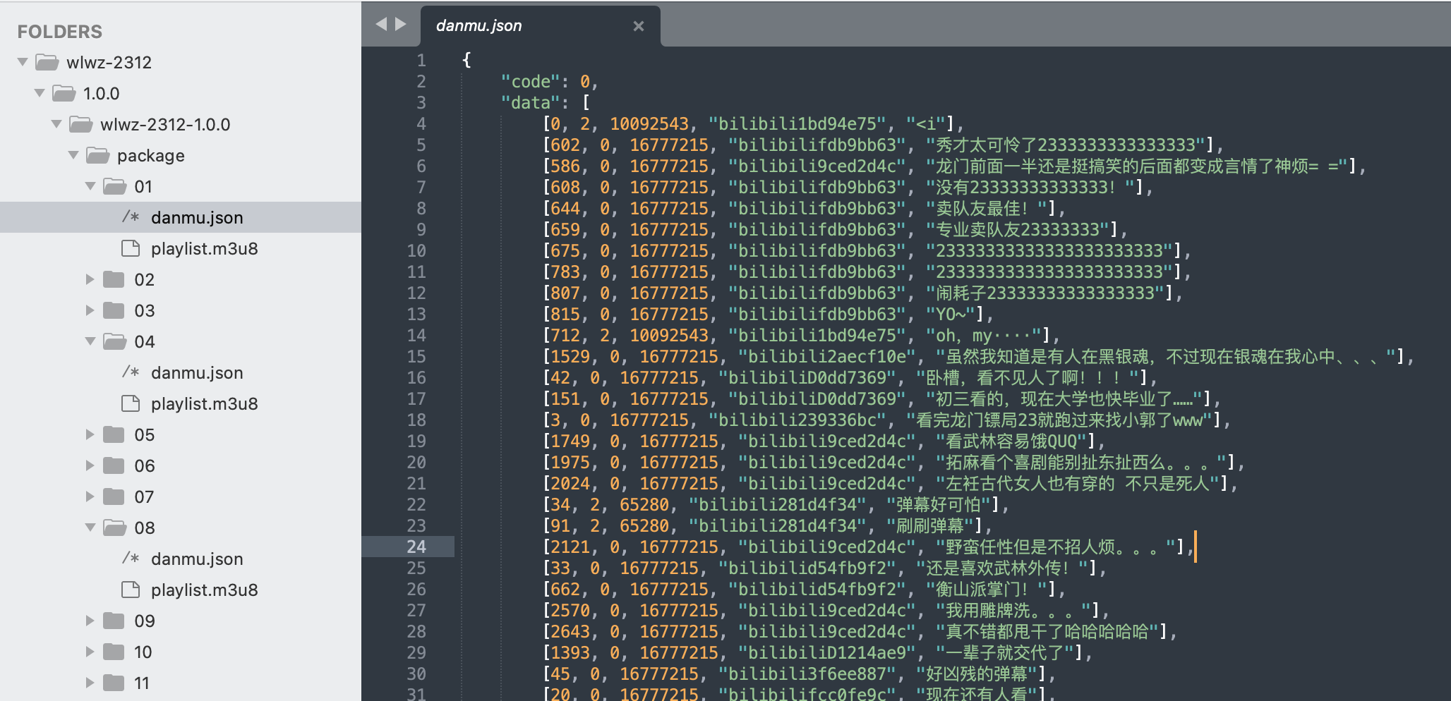 此外,某些包(例如“wlwz-2312”)在 JSON 文件中包含普通话字幕。