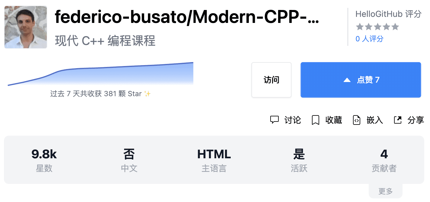 以上为 2024 年第 6 个工作周的 GitHub Trending 🎉如果你发现其他好玩、实用的 GitHub 项目,就来 HelloGitHub 和大家一起分享下吧。