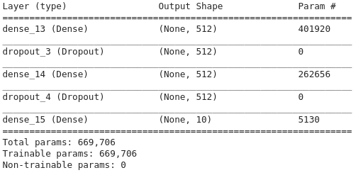 例如,这个 Keras 模型有 3 个 size 为 512x512 的密集层(dense layers):