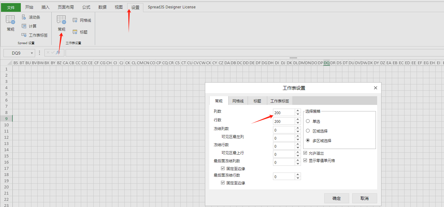 3、点击菜单【设置】,选择【常规】,并将列数设置为200。