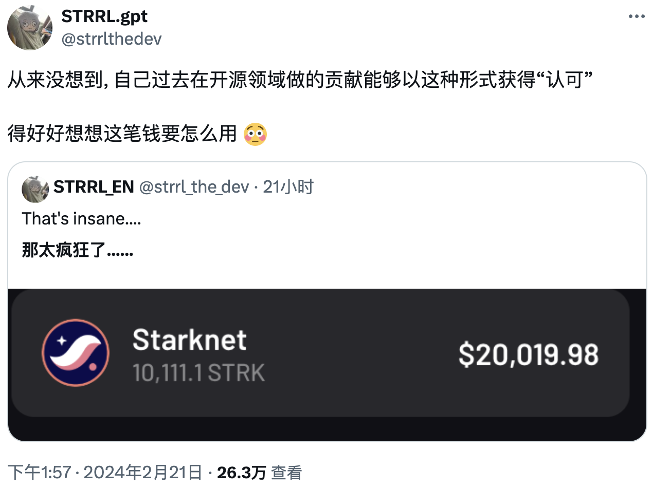 StarkNet 撒钱,程序员在 Web3 领了 14 万