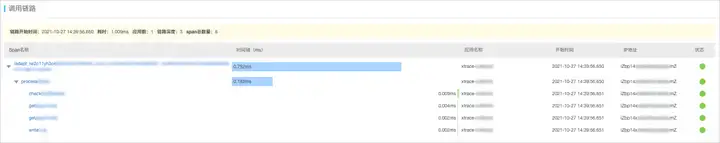配置好之后,就可以在全链路追踪平台上看到整个调用链每个节点的耗时情况了: