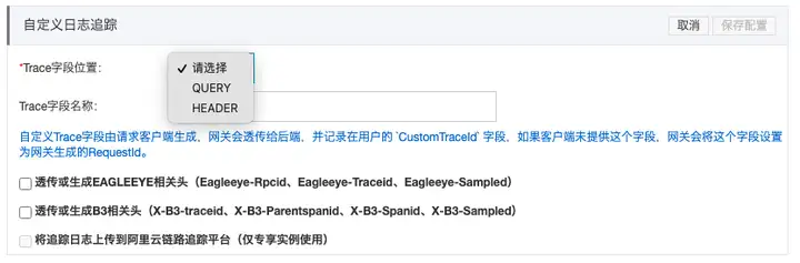 API 网关将所有经过 API 网关的调用日志同步到用户自己的 SLS 日志服务中去,通过 SLS 日志服务可以进行实时日志查询、下载、多维度统计分析等,并且可以配置基于日志的报警策略;API 会自动将调用日志同步给阿里云云监控产品,用户可以在云监控产品上直接配置报警规则,监控报警的指标包括:Http 应答码,API 响应时间,请求次数,流入流量,流出流量。用户可以配置将调用日志上传到阿里云链路追踪平台,分析全链路调用情况。链路追踪 Tracing Analysis 提供了完整的调用链路还原、调用请求量统计、链路拓扑、应用依赖分析等工具,可以帮助用户提高开发诊断效率。
