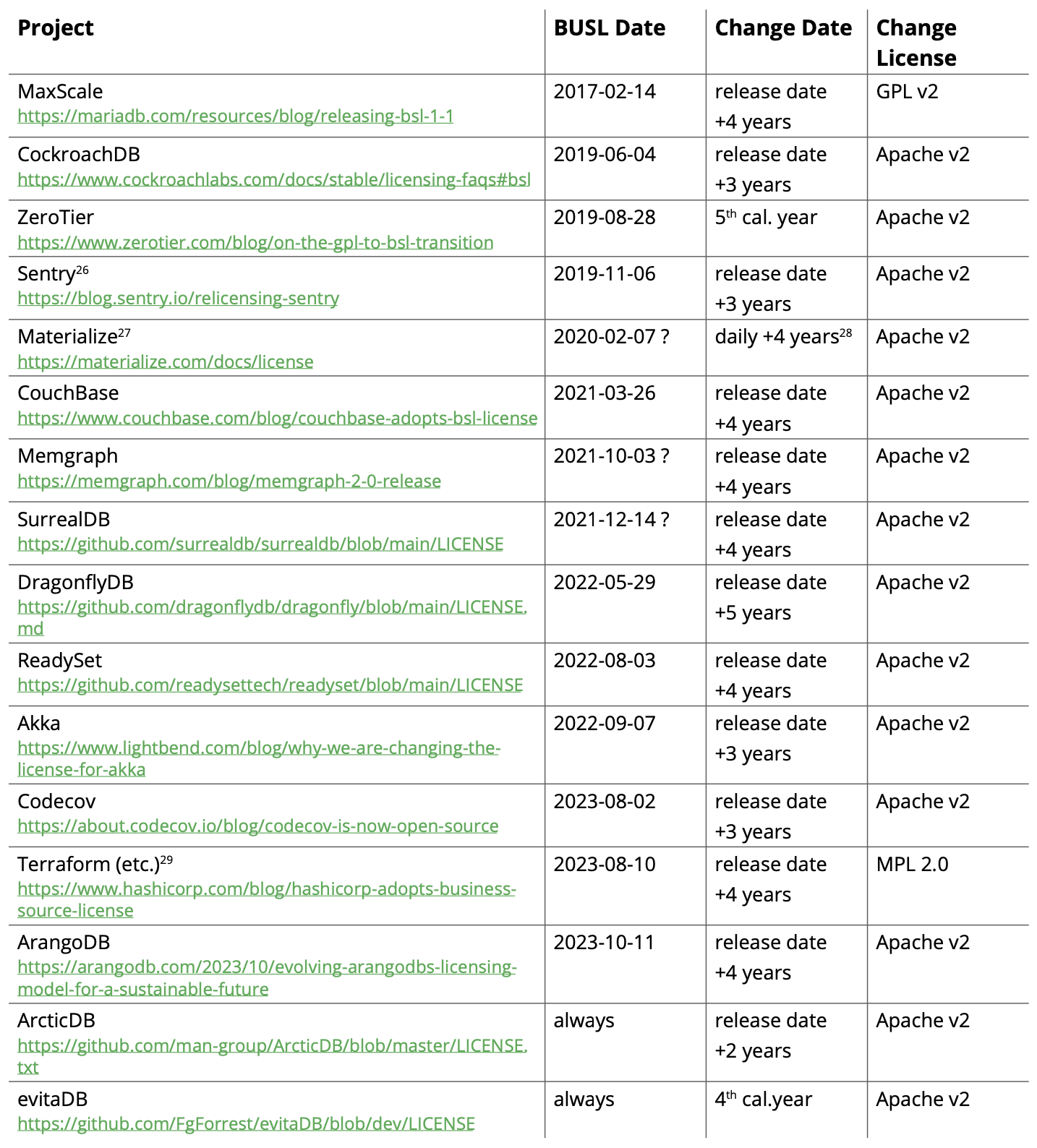 以下是当前知名的 16 个使用 BUSL 的项目,都是延迟几年后转型成开源协议: