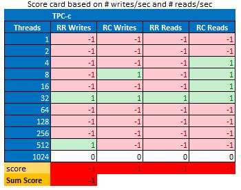 对于类似 TPC-c 的测试,我使用不同的隔离级别运行了两组测试: