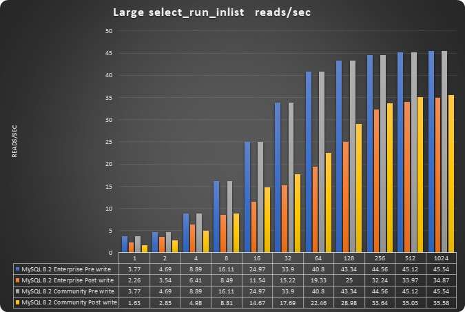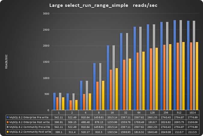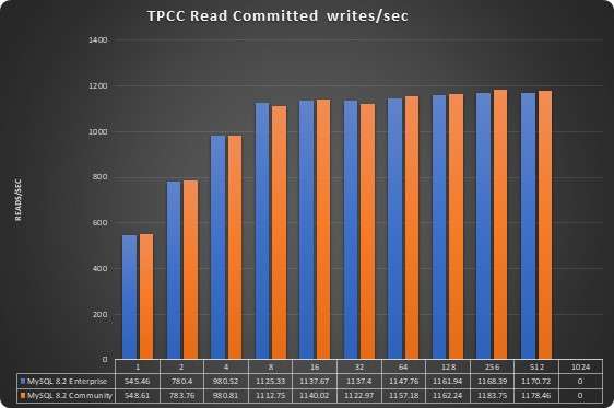 此外,对于写入而言,只有当负载分布在多个表上时,企业版似乎才能做得更好,而在其他情况下社区版更好。