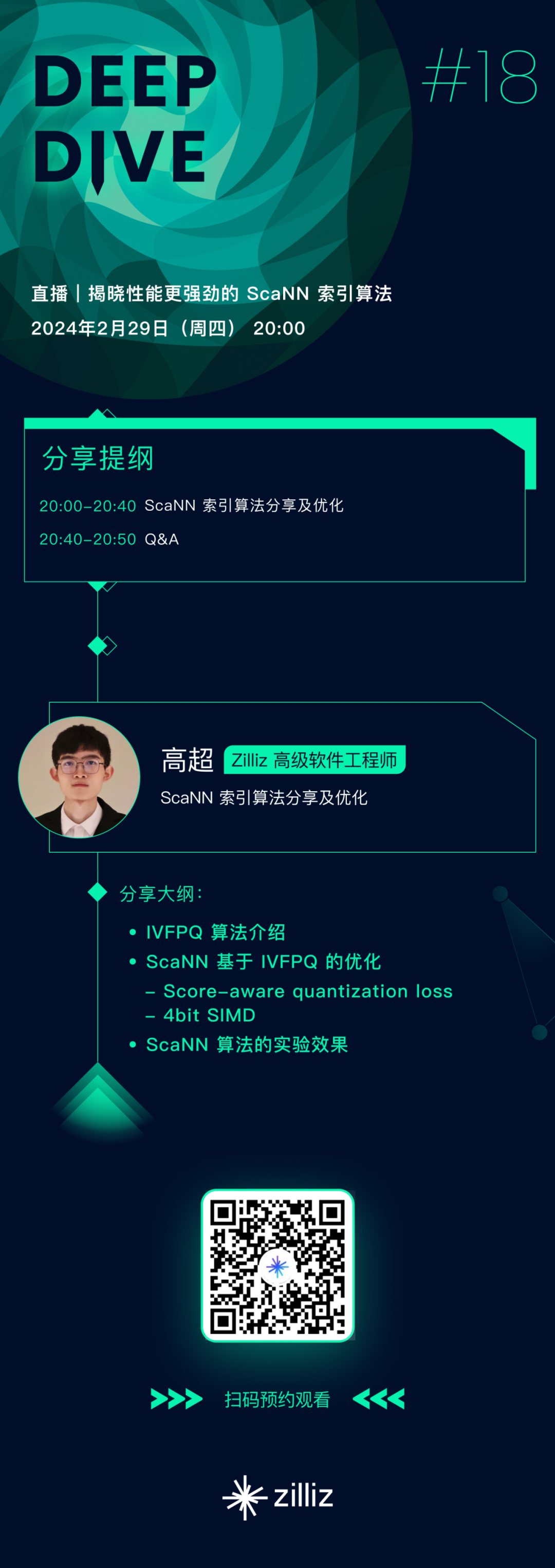 本次直播,我们邀请到了 Zilliz 高级软件工程师高超,他将为大家详细拆解 ScaNN 算法并展示其实验效果。