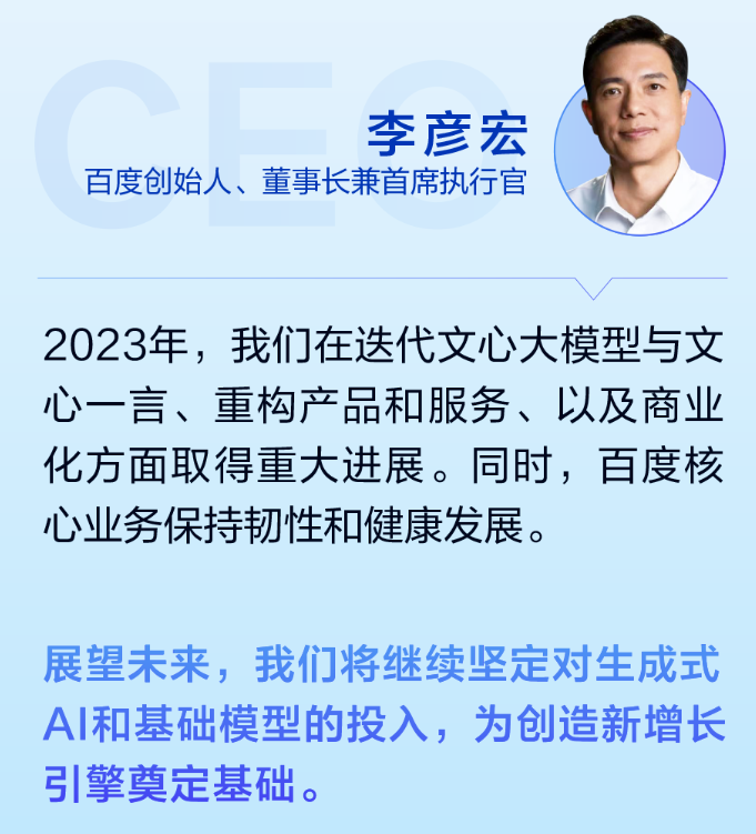清华大学战略新兴产业研究中心副主任胡麒牧认为,百度2023年的营收同比增速39%,净利润同比增速44%,其中AI业务带来的业绩增长是主要动力。