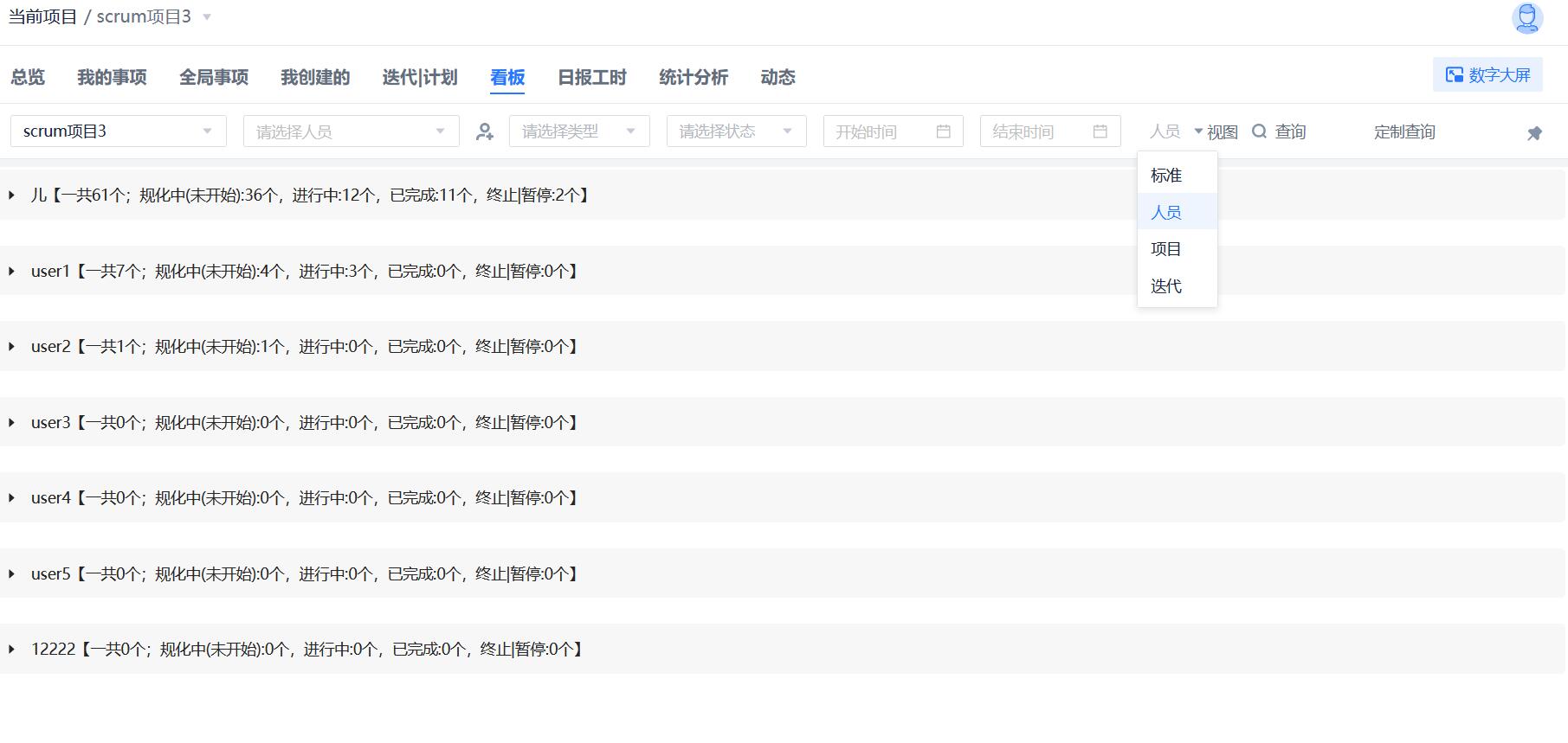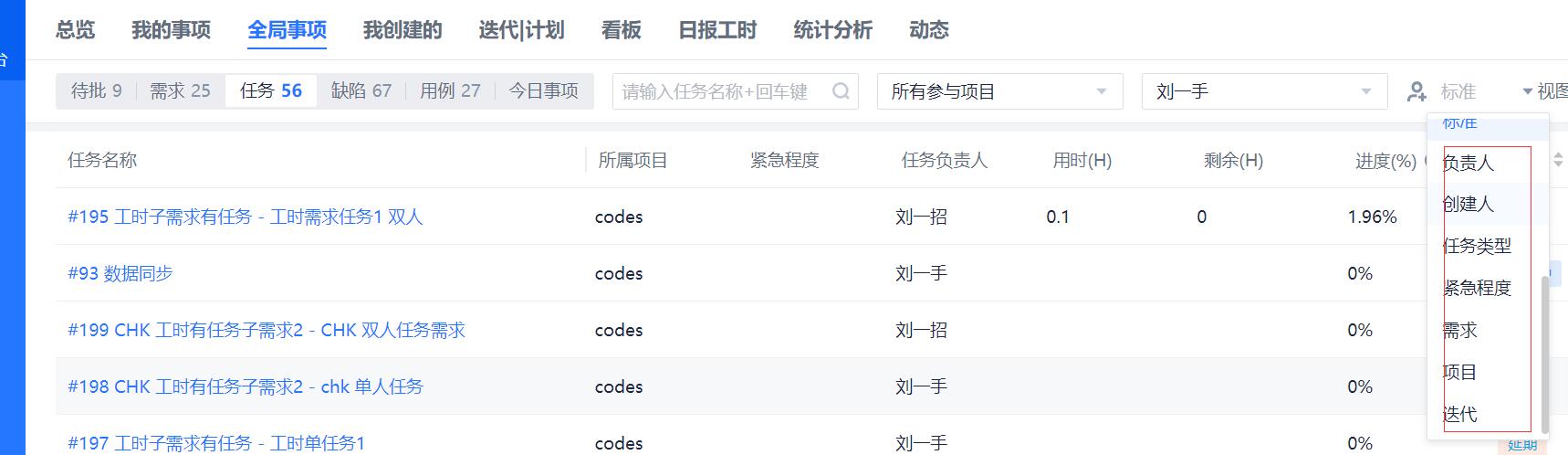 全局事项中,需求,任务,测试用例,缺陷都可多维度分组 ,方便以全局视角查阅核心工作事项