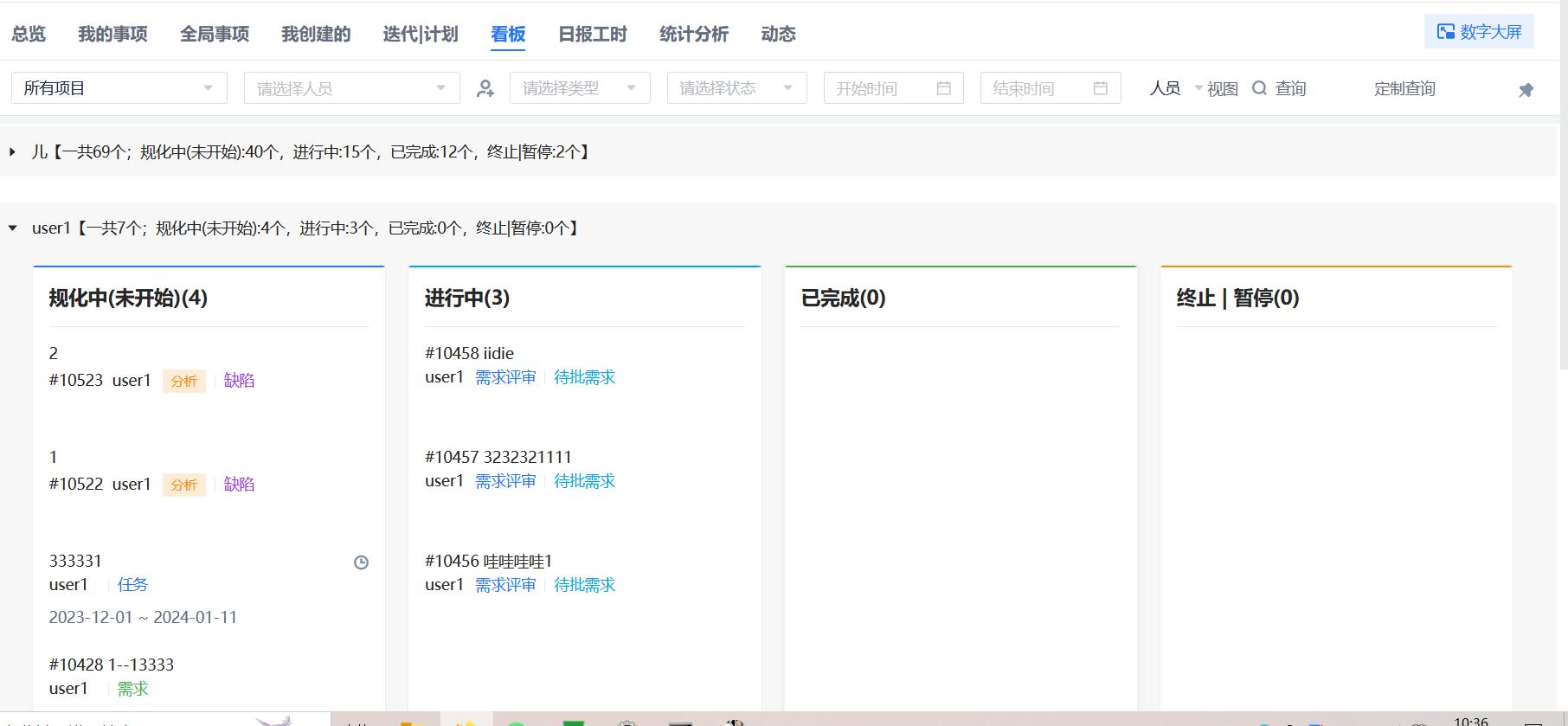 且可在看板上处理一切事务,如处事缺陷入流转,执行用例,处理任务,执行迭代事项