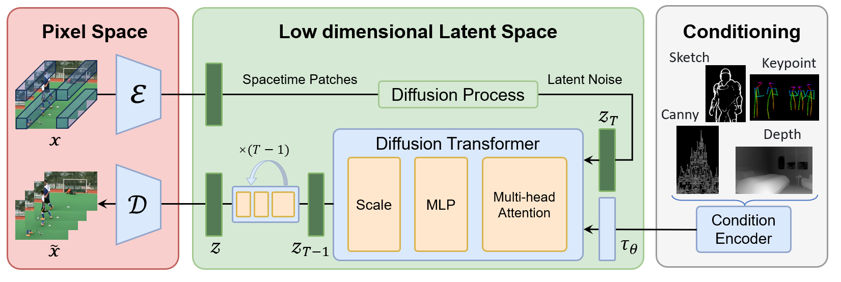 3.Condition Encoder:条件编码器(Condition Encoder)支持多种条件输入,允许模型根据不同的文本描述或其他条件生成视频内容。