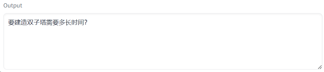 Instruction: (你希望模型进行什么操作,比如“请将下列瑞典语翻译成中文”)Input:(你希望模型处理哪些内容,比如“hur l?ng tid tog det att bygga twin towers”)Response: