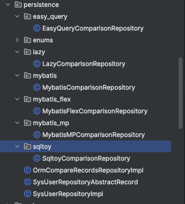 不同ORM框架mybatis、sqltoy、Lazy、easy-query、mybatis-mp 创建 ORMComparisonRepository 的实现