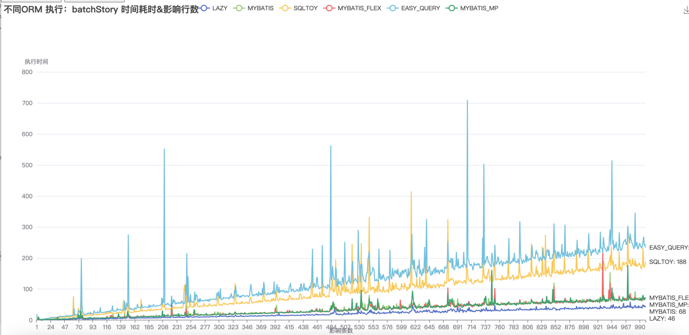 - 十万数据时,处理时间由快到慢依次是: lazy、mybatis-flex、mybatis-mp、mybatis、easy-query、sqltoy