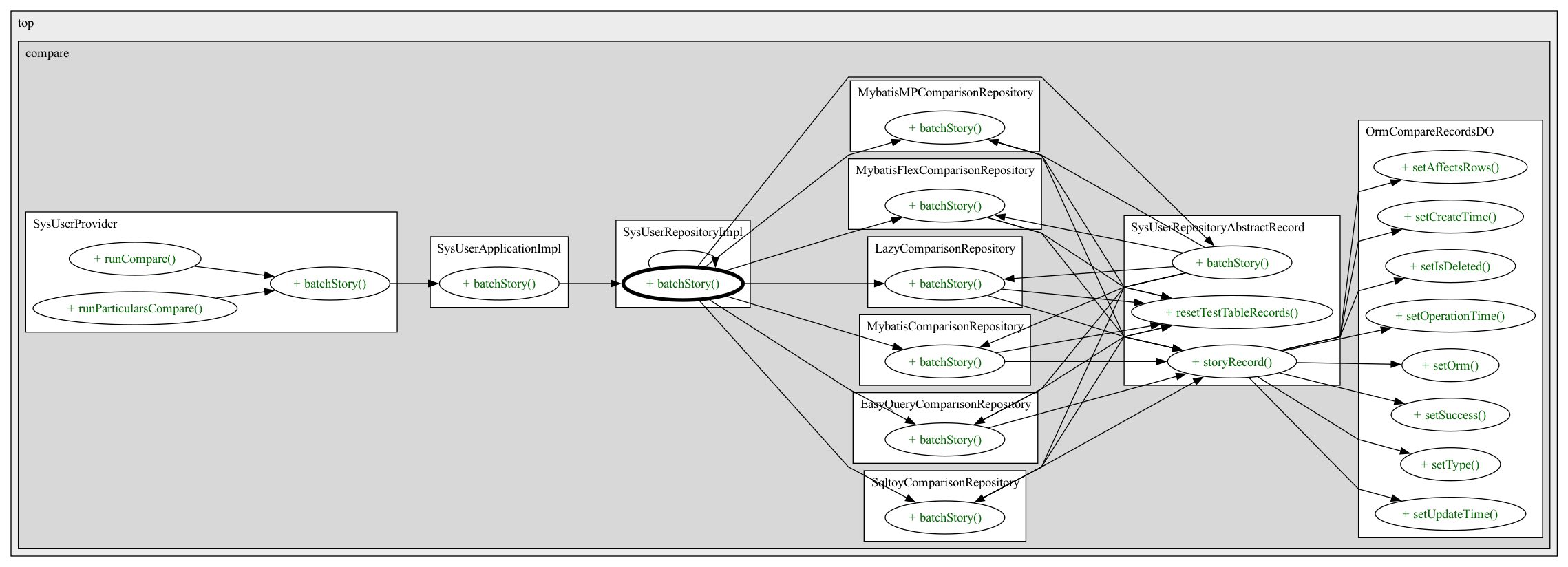 声明 SysUserRepository 接口 继承 ORMRepository 用于循环调用不同orm实现方法执行方法测试产生测试结果