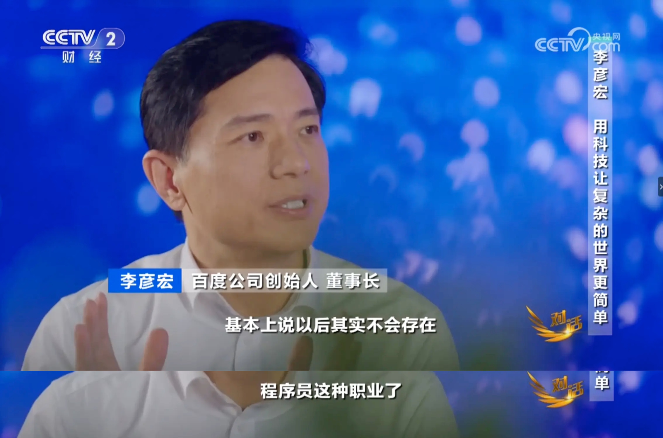 李彦宏:未来可能不会存在程序员这种职业