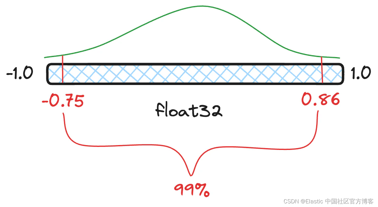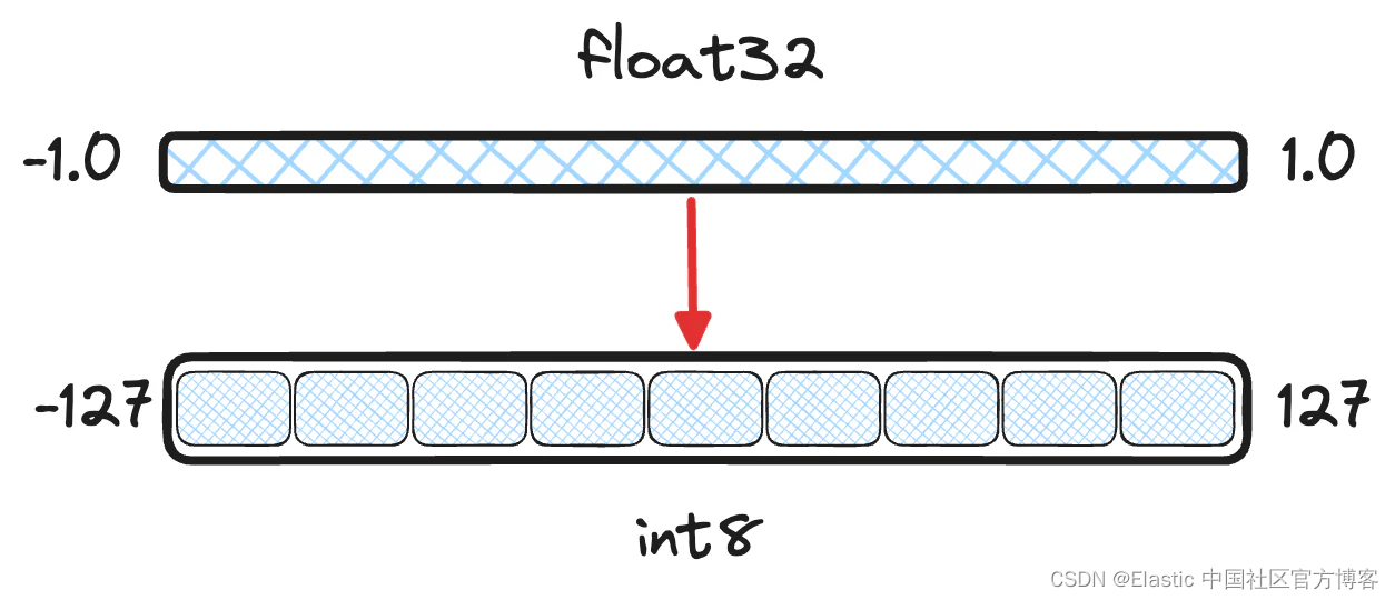 使用 int8_hnsw 索引时,每个浮点向量的维度都会量化为 1 字节整数。 这可以减少多达 75% 的内存占用,但会牺牲一定的准确性。 然而,由于存储量化向量和原始向量的开销,磁盘使用量可能会增加 25%。