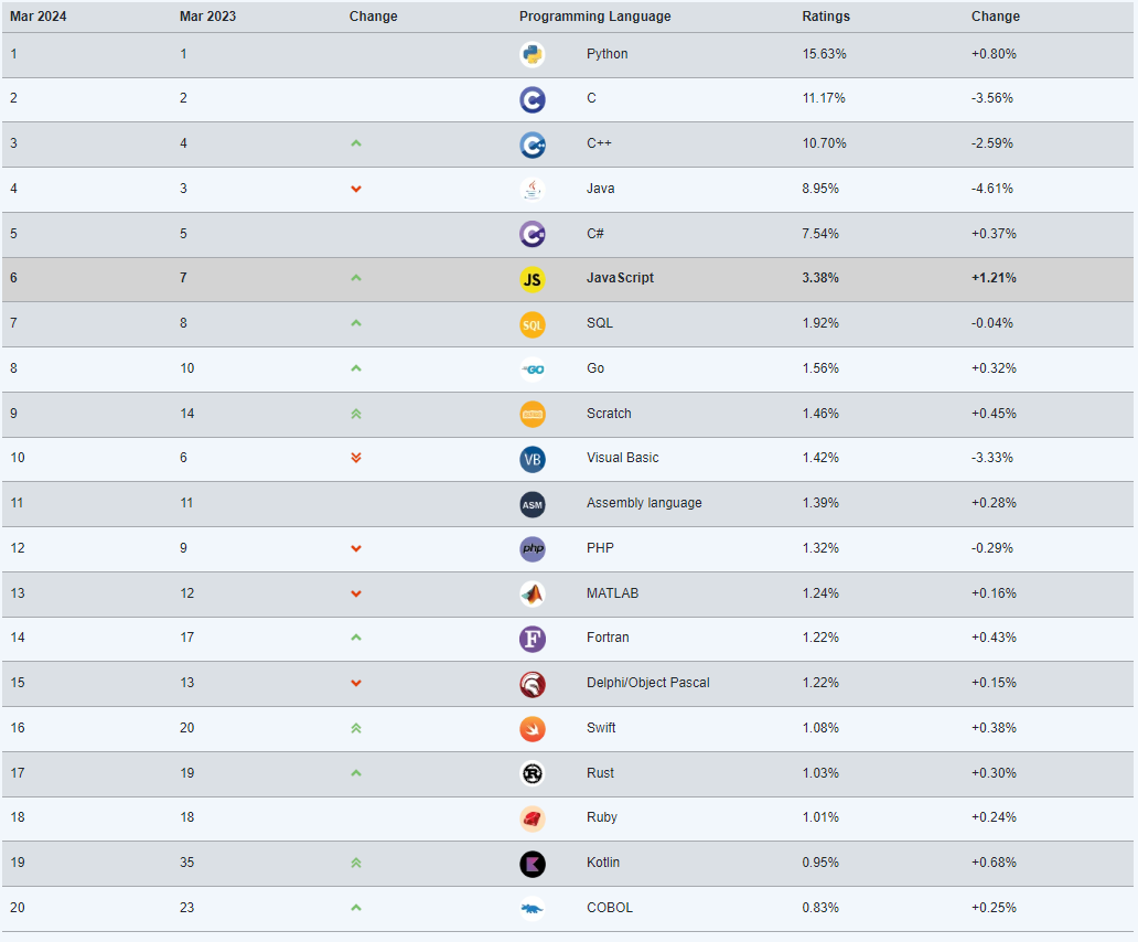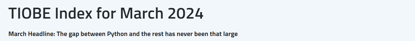 TIOBE 公布了 2024 年 3 月的编程语言排行榜。