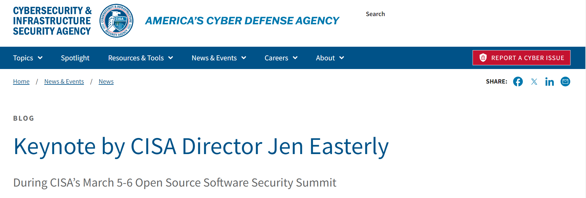 CISA 总监 Jen Easterly 在日前该机构的开源软件安全峰会上发表主题演讲时解释道: