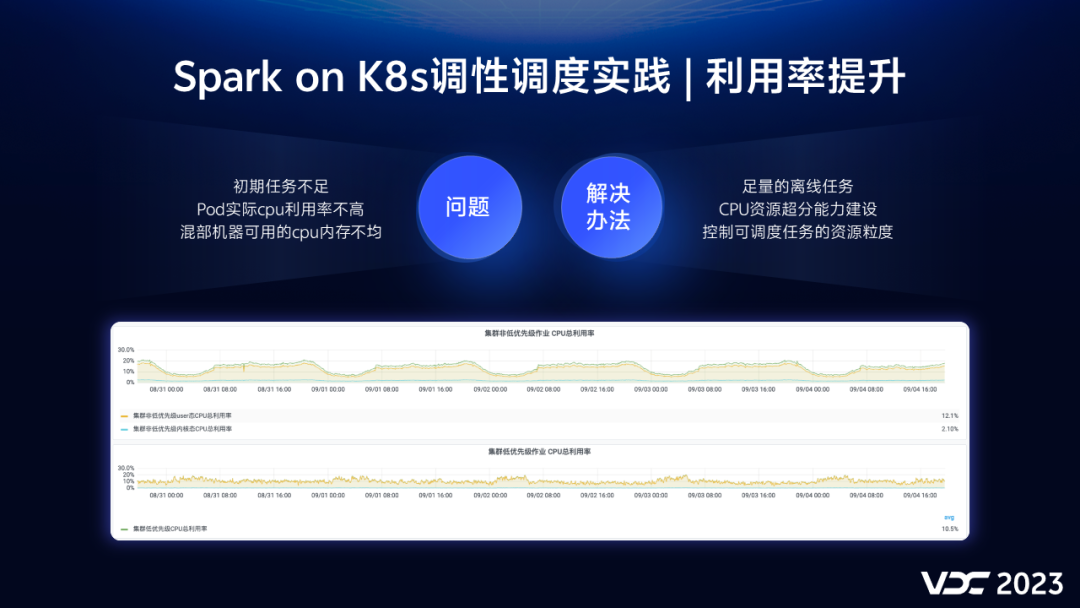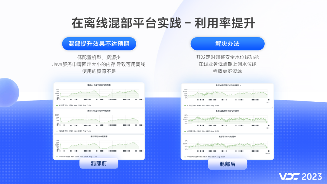 通过我们在任务调度侧,以及之前甘青提到过的其他措施。混部集群利用率得到了进一步的提升。