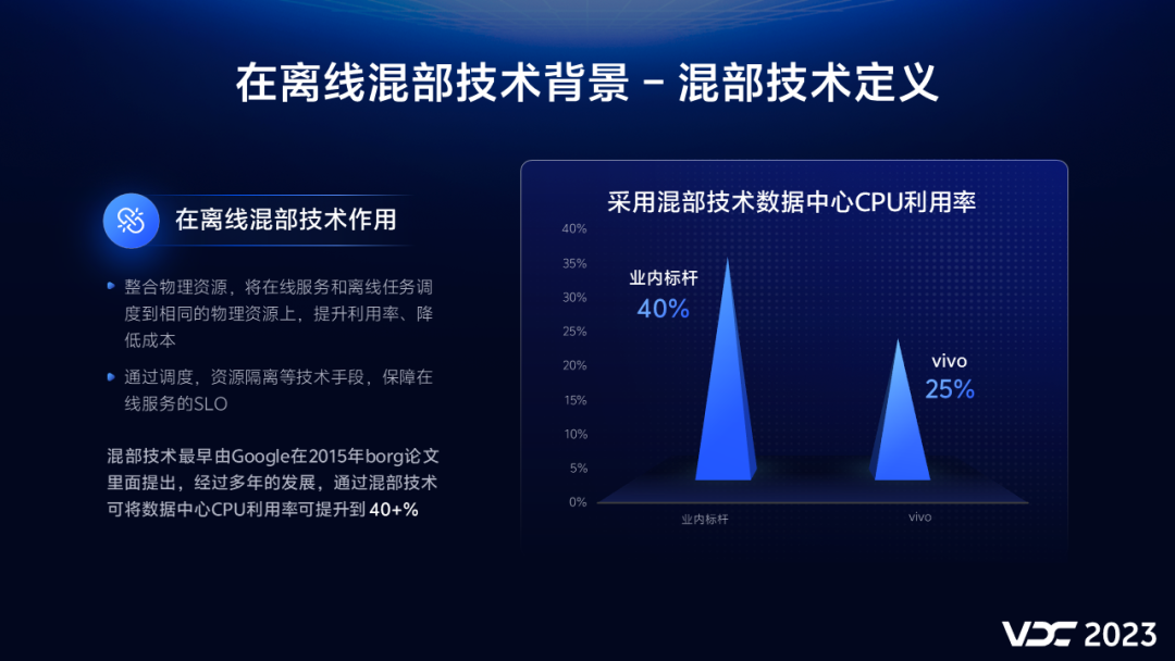 伴随 vivo 互联网业务的高速发展,数据中心的规模不断扩大,成本问题日益突出。在离线混部技术可以在保证服务质量的同时,极大的提升数据中心资源利用率,降低成本。混部技术涉及任务调度、资源隔离、运维观测等一系列技术难题,本文将介绍 vivo 在混部技术方面的实践和探索,为读者提供借鉴和参考。