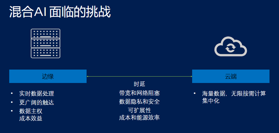 虽然混合式AI部署具有以上种种优势,但我们看到它仍然面临着时延、数据带宽、数据隐私和安全、以及可扩展成本和能源效率的种种挑战。