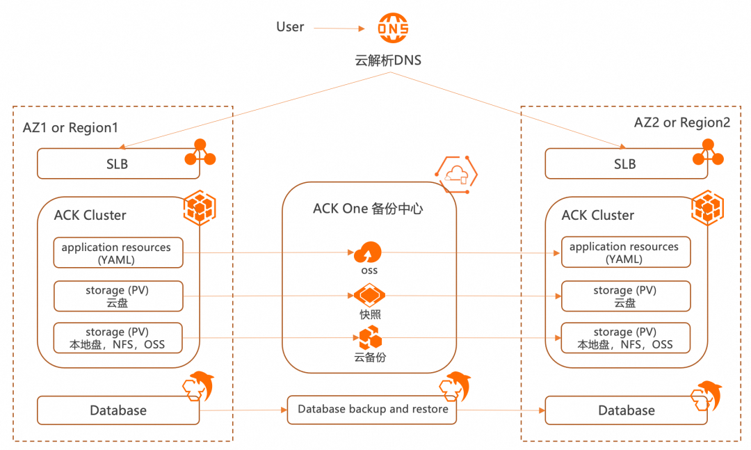 通过 ACK One 备份中心 [3 ] ,可以备份 ACK 集群中的应用,包括无状态应用和有状态应用,对有状态应用,在备份应用 YAML 的同时可以备份相关 Storage 数据。