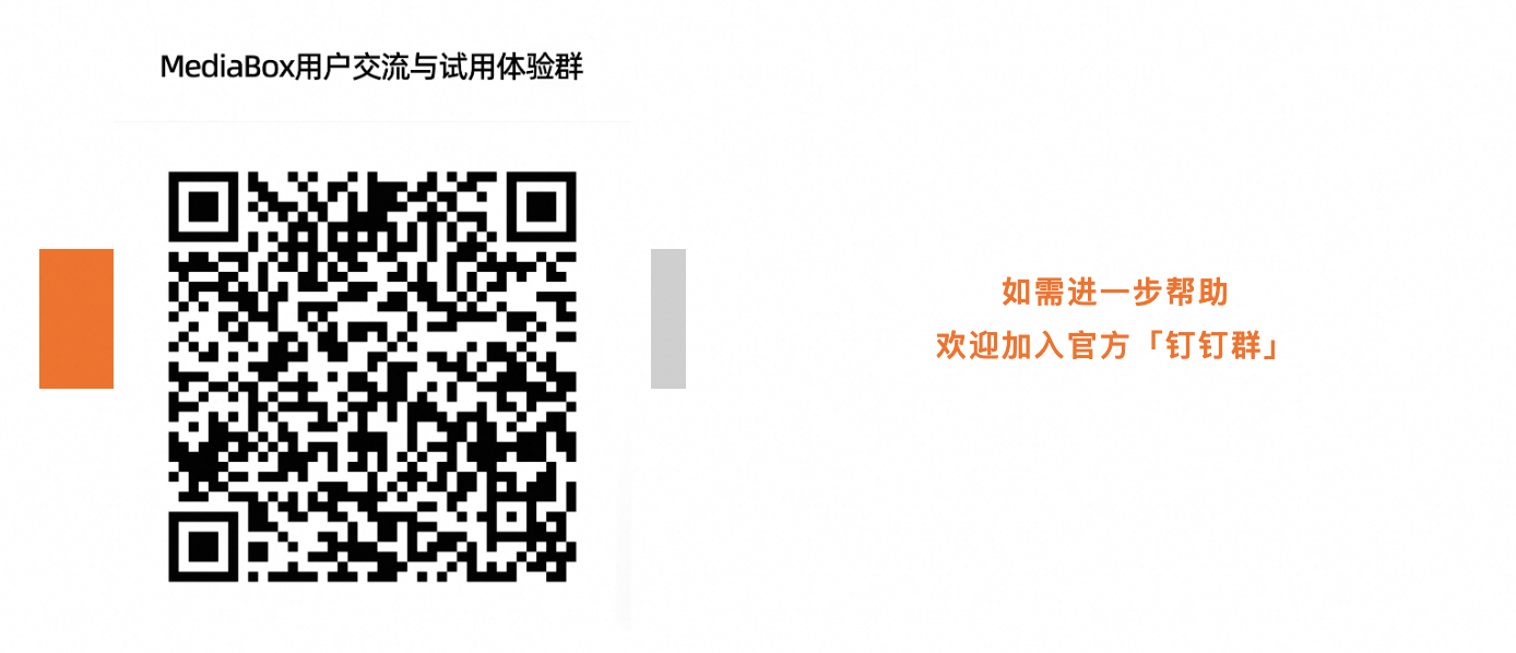 如果您在接入或使用MediaBox音视频终端SDK中有任何问题或建议,欢迎通过钉钉扫码加入客户支持群,与我们交流分享。