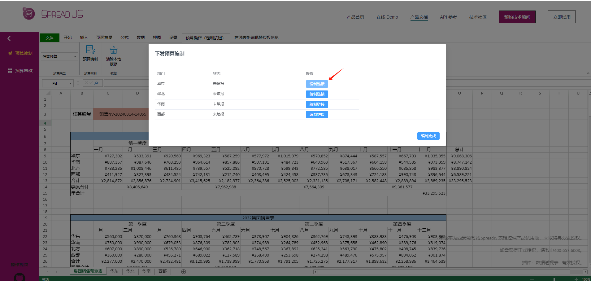 当所有部门经理填写完预算后,就可以点击“编制完成”
