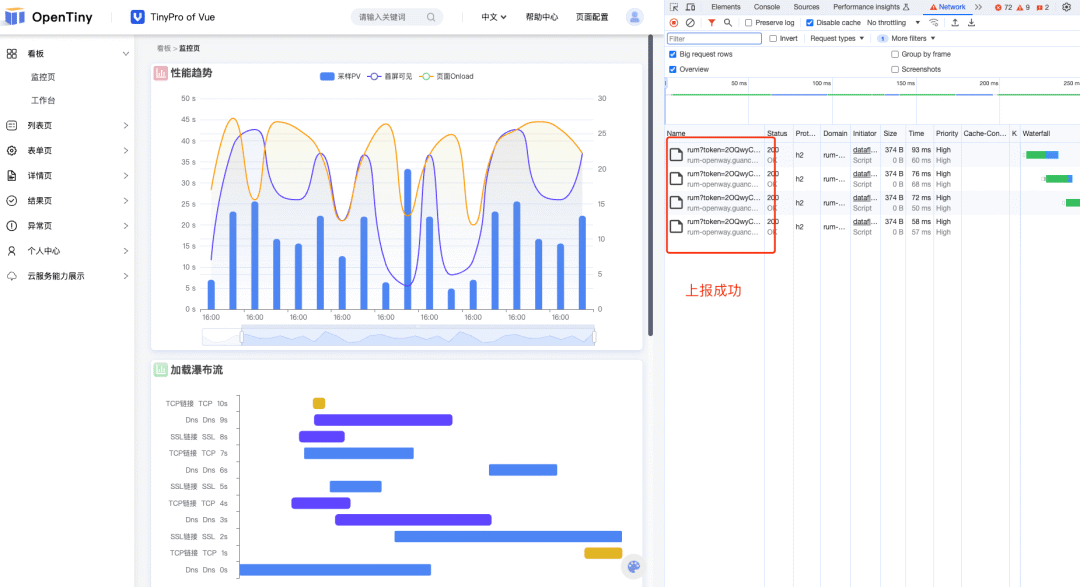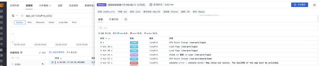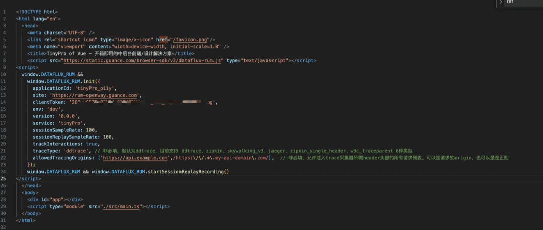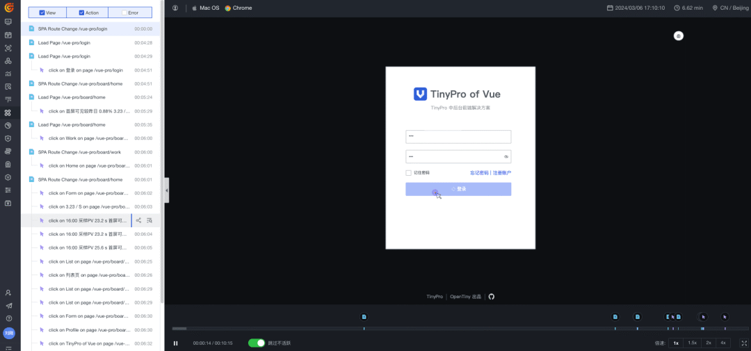 下面以 TinyPro 为例来接入如何实现 Vue 应用的可观测性。