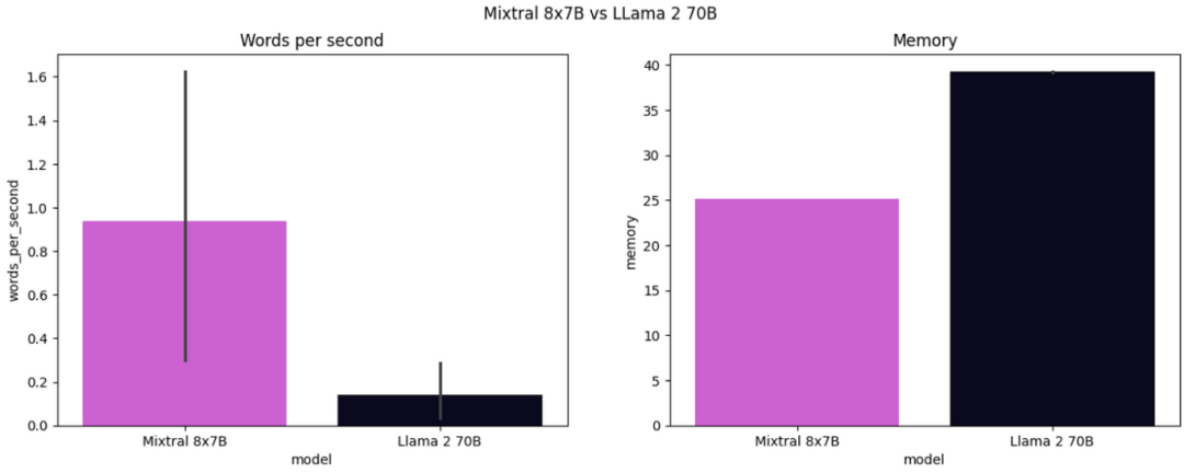 另一个差异是推理时间,Mixtral 8x7B花费了约3分钟,而Llama 2 70B花费了约10分钟。